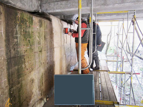 鉄筋コンクリート構造物ないの鉄筋、配管、空洞等の位置や深さを探査します。